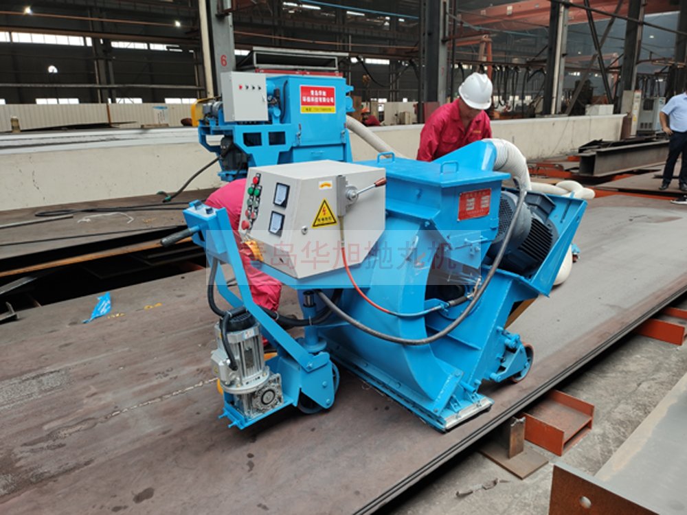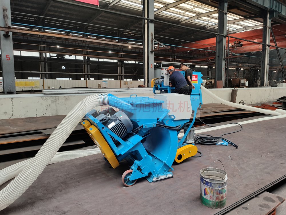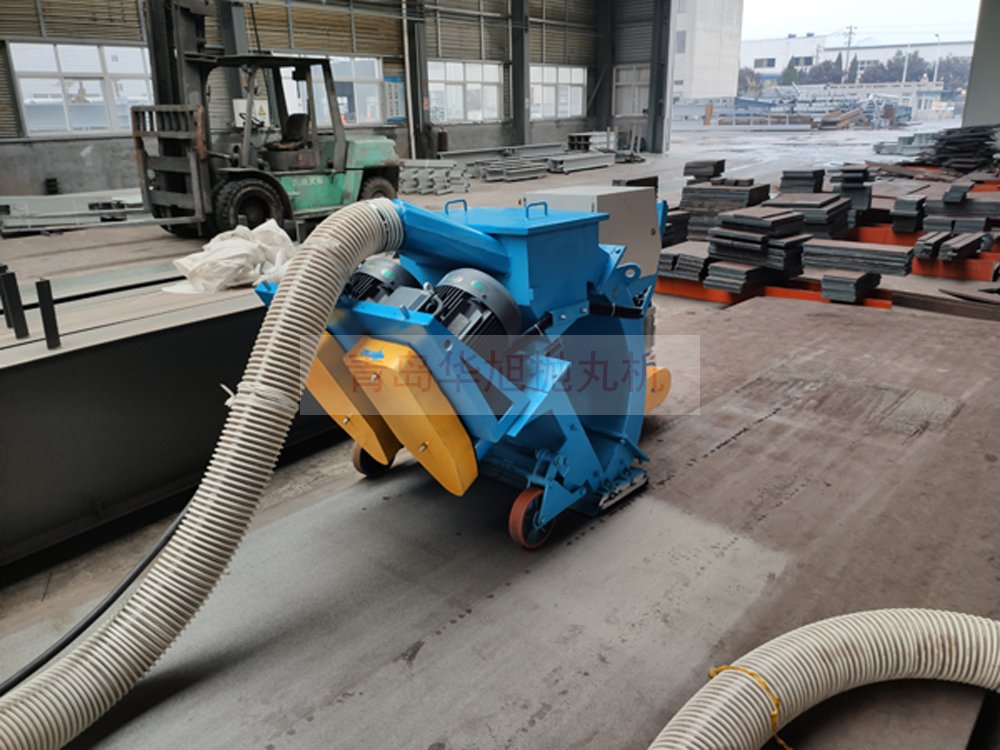 客戶訂購的移動式鋼板拋丸機 調試現場除銹效果